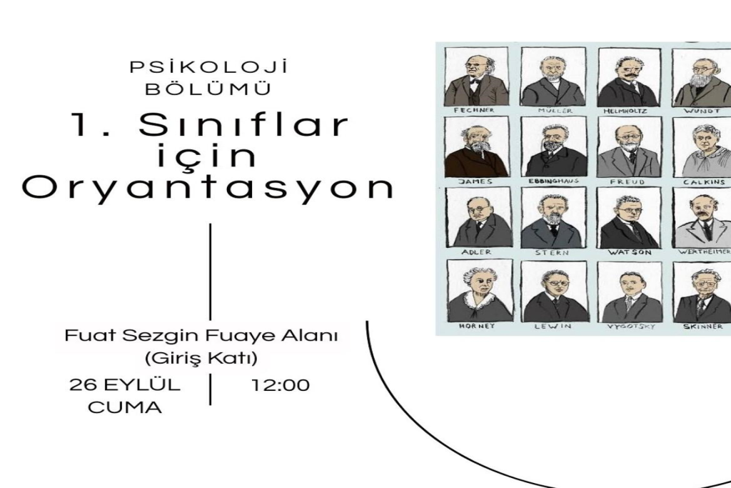 Psikoloji Bölümü 1.Sınıf öğrencilerimizi 26.09.2025 12.00'daki oryantasyon programına bekliyoruz.